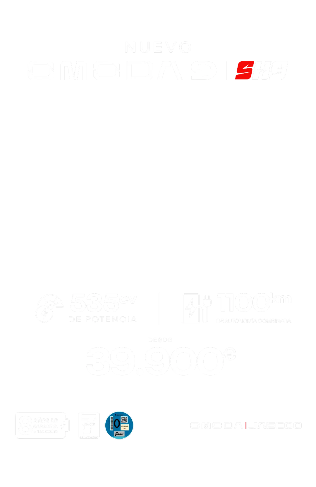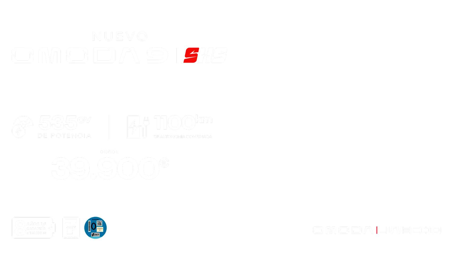 (3) *PVP recomendado en Península y Baleares para OMODA 9 SHS PREMIUM AWD 1.5 TGDI pintura especial Gris Mate (IVA, impuestos de matriculación, transporte, descuento de marca y concesionario, descuento por financiar con Santander Consumer Finance S.A. y préstamo anticipo de hasta 7.000€ con Santander Consumer Finance S.A. para particulares que tengan derecho a beneficiarse del Plan Moves III**, incluidos en la oferta). Sistema de amortización Francés. Financiación ofrecida, sujeta a estudio y aprobación por parte de Santander Consumer Finance, S.A. Oferta válida para clientes particulares que financien a través de Santander Consumer Finance, S.A. según condiciones actuales con un capital mínimo de 25.000€, y con una duración y permanencia mínima de la financiación de 36 meses. Campaña incompatible con otras ofertas financieras. Oferta válida hasta el 31/10/2025 y sujeta a disponibilidad de stock. Garantía comercial de 7 años o 150.000 km (lo que ocurra primero), según Manual de Garantías. No incluye gastos de matriculación y pre-entrega. Autonomía eléctrica en ciclo combinado WLTP: 145km; Emisiones CO2 combinadas WLTP (gr/Km): 38g; Consumo ponderado combustible en ciclo combinado WLTP (L/100km): 1.7L.